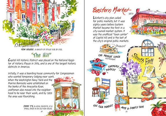 Diana Gessler is your tour guide to our nation’s capital city, neighborhood by neighborhood. Vivid watercolors accompany fascinating facts and practical information, as you meander from the grandest historic landmarks to the city’s must-see hidden gems.